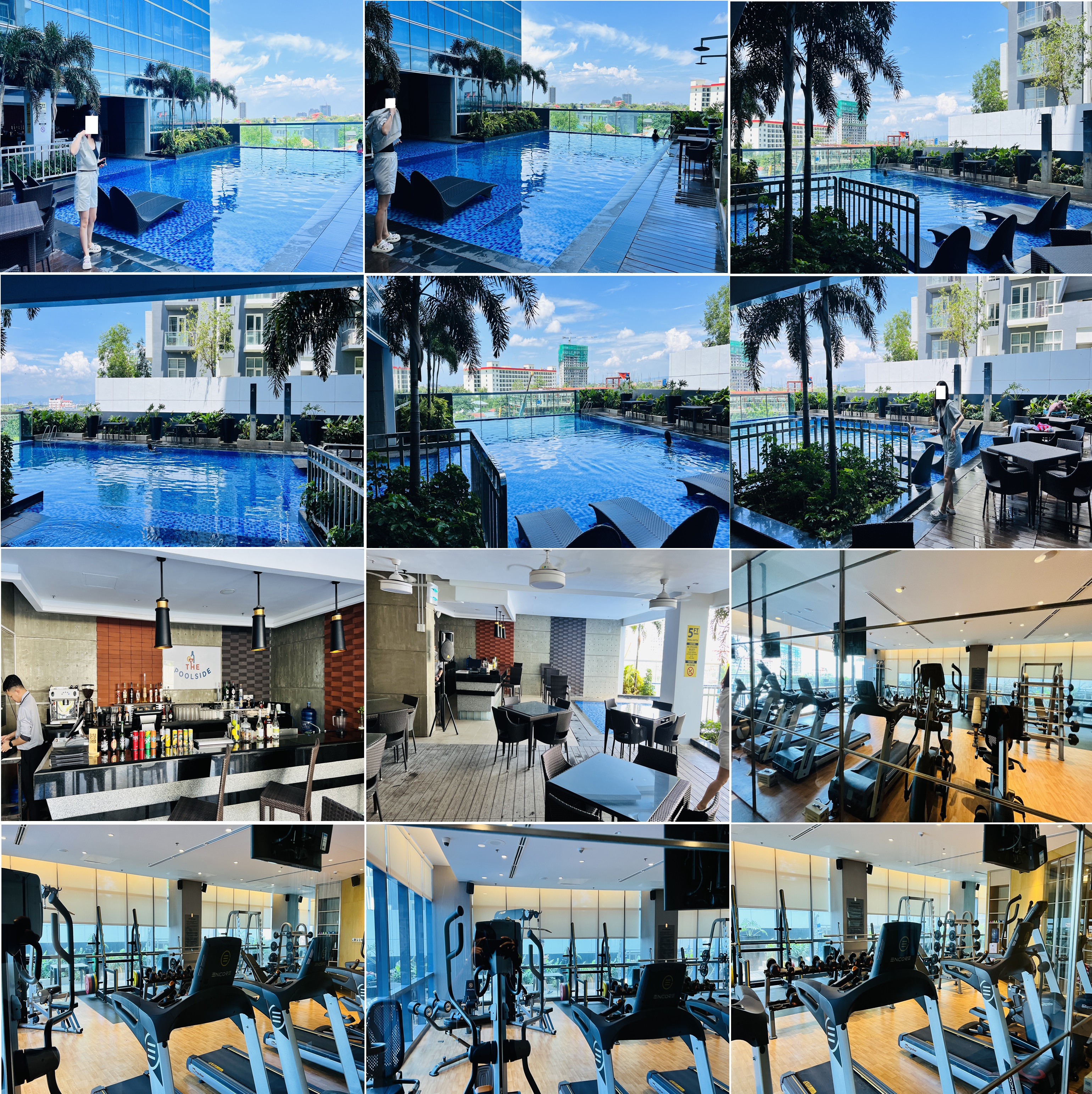 그리고 3층에는 야외 수영장과 헬스장 그리고 바가 있어서 간단하게 알코올과 논 알코올음료를 금액을 내고 드실 수가 있습니다. 3층 엘리베이터를 내리시면 묵고 계신 호수를 확인 후에 이용이 가능한데, 타월을 무료로 필요한 만큼 대여를 해주시기 때문에 요청을 하시면 됩니다.