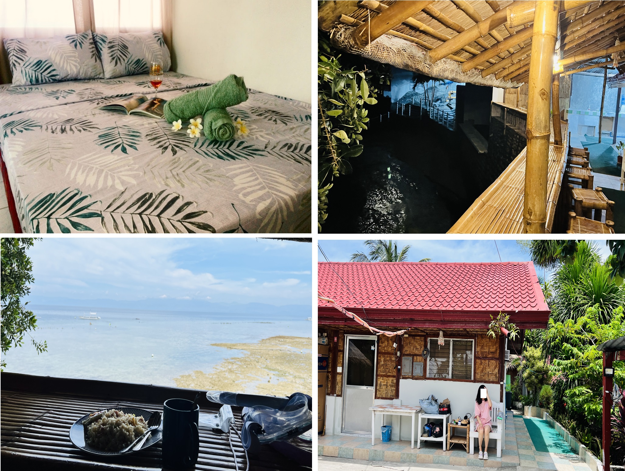매우 저렴함에도 뷰가 정말 아름다운 그런 게스트 하우스입니다. 그리고 모알보알 방문 목적이 거북이와 정어리떼를 만나기 위해서라면 사실 숙소는 그리 중요한 부분이 아니더라고요 저희도 새벽부터 거북이, 정어리떼 그리고 카와산 캐녀닝까지 하니 숙소는 잠과 아침밥만 먹는 그런 공간이었습니다.